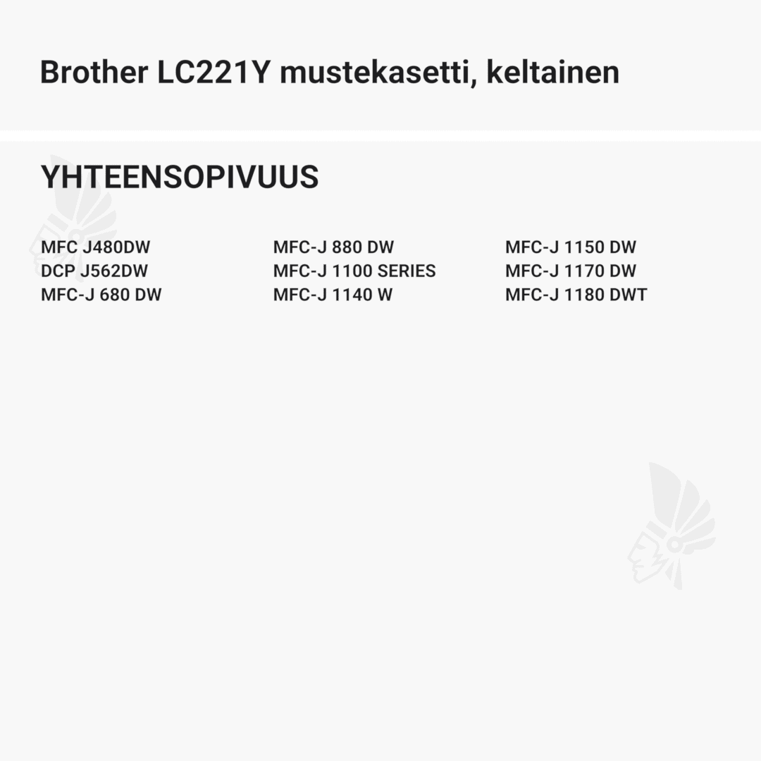 | Brother LC221Y mustekasetti, keltainen – tarvike, premium | 600 | Väri: | Saatavuus: | 13,90 € | KORIIN |