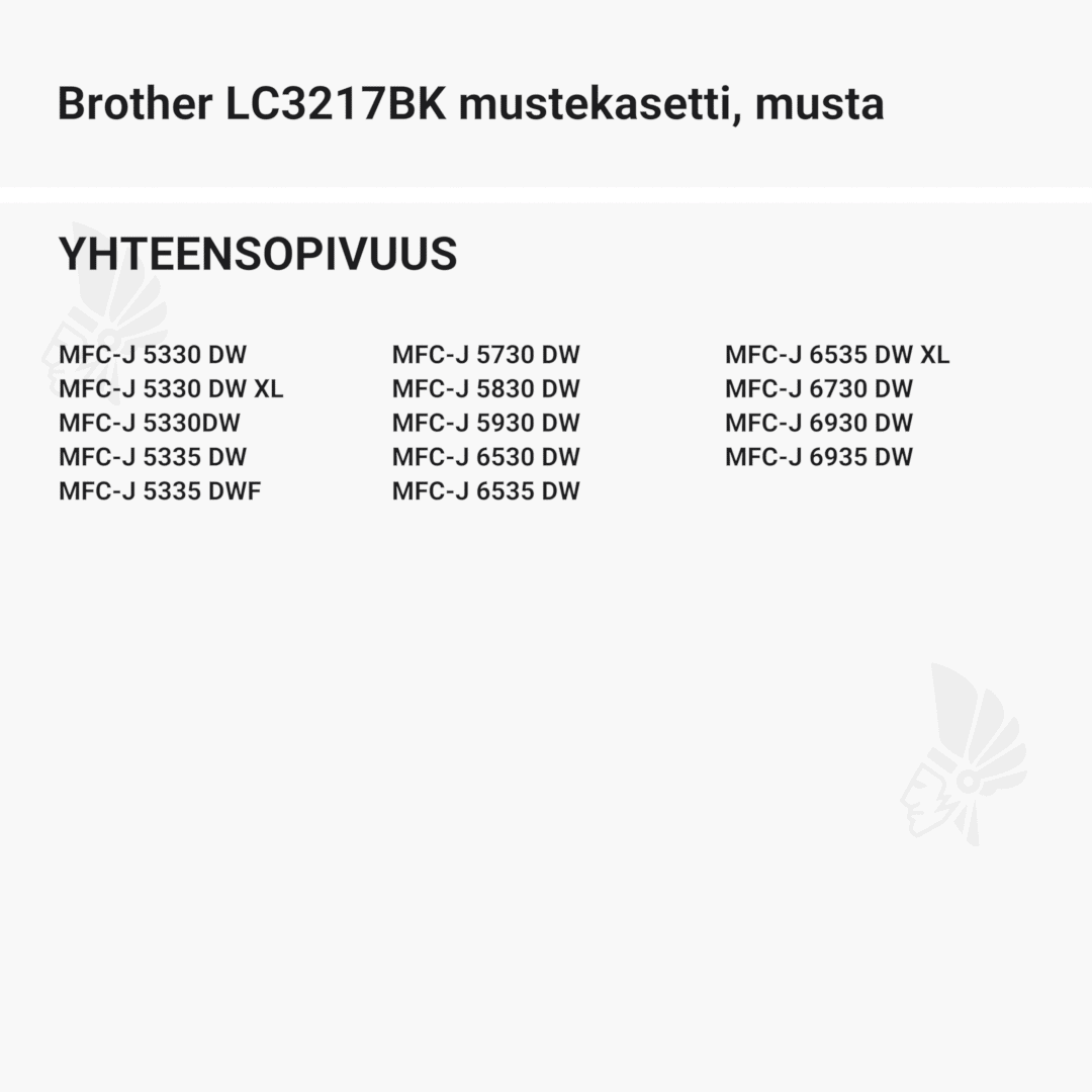 | Brother LC3217BK mustekasetti, musta – tarvike, premium | 550 | Väri: | Saatavuus: | 16,90 € | KORIIN |