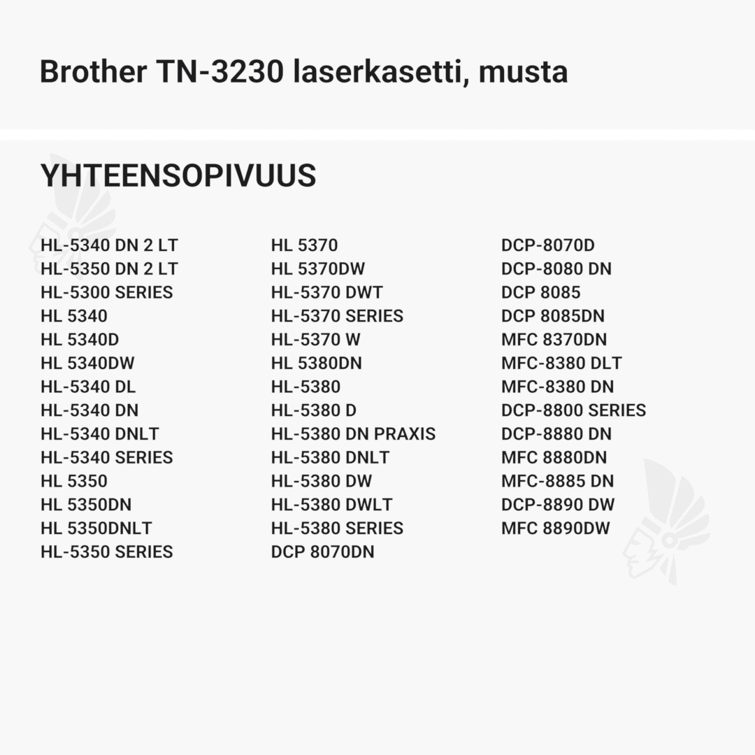 | Brother TN-3230 laserkasetti, musta – tarvike, premium | 3000 | Väri: | Saatavuus: | 59,90 € | KORIIN |