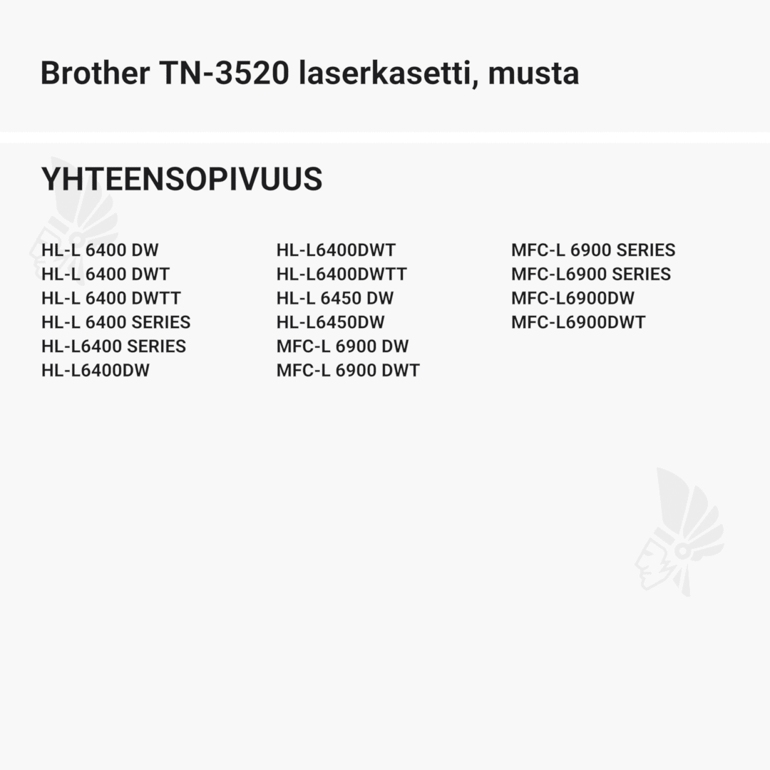 | Brother TN-3520 laserkasetti, musta – tarvike, premium | 20000 | Väri: | Saatavuus: | 79,90 € | KORIIN |