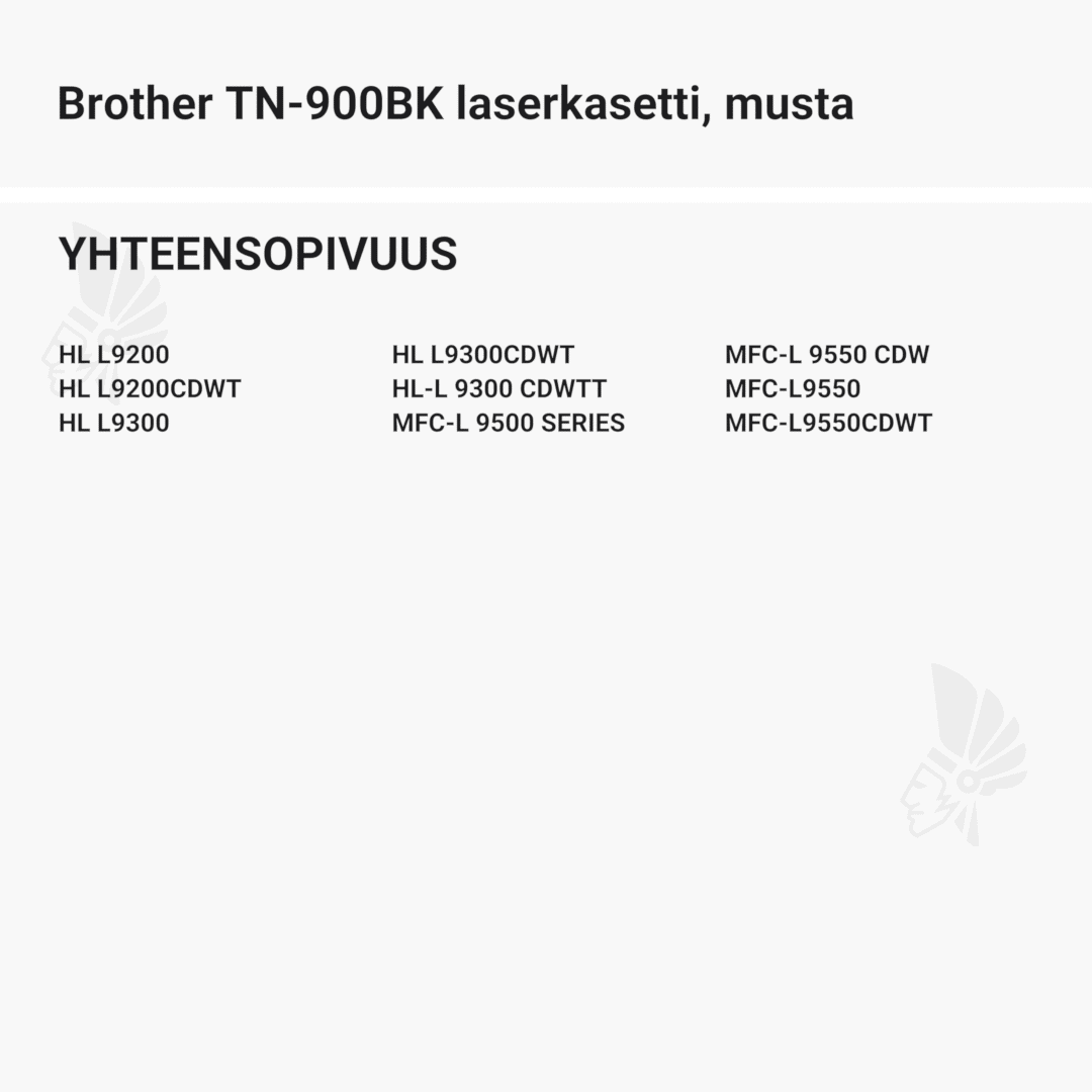 | Brother TN-900BK laserkasetti, musta – tarvike, premium | 6000 | Väri: | Saatavuus: | 99,90 € | KORIIN |