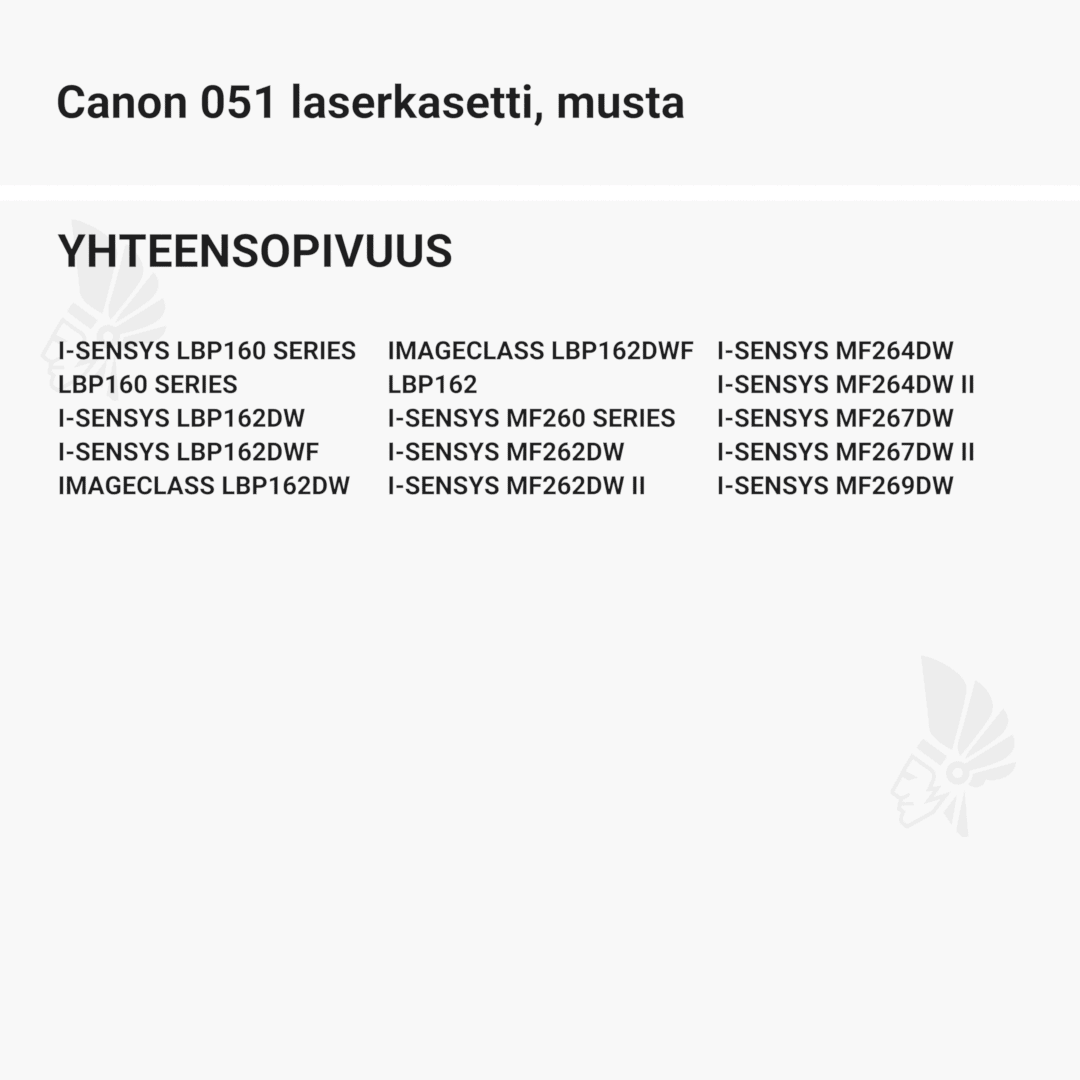 | Canon 051 laserkasetti, musta – tarvike, premium | 1700 | Väri: | Saatavuus: | 44,90 € | KORIIN |