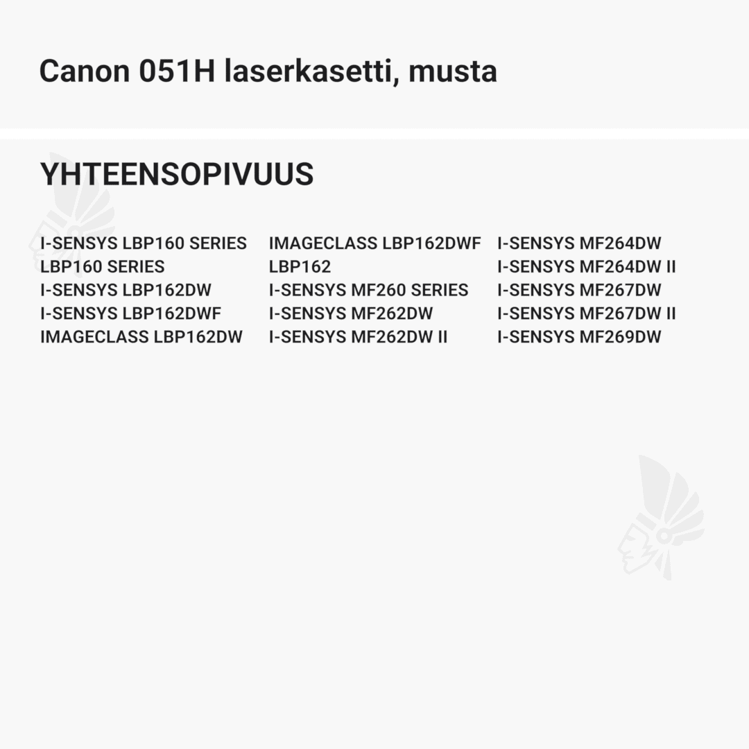 | Canon 051H laserkasetti, musta – tarvike, premium | 4100 | Väri: | Saatavuus: | 54,90 € | KORIIN |