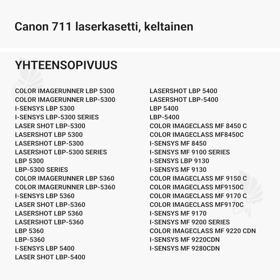 | Canon 711 laserkasetti, musta – tarvike, premium | 6000 | Väri: | Saatavuus: | 149,90 € | KORIIN |