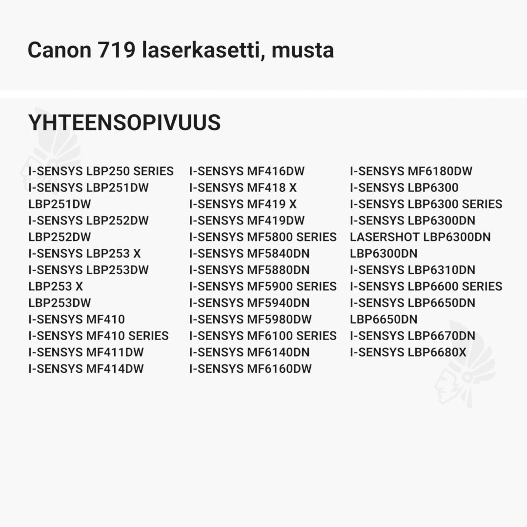 | Canon 719 laserkasetti, musta – tarvike, premium | 2100 | Väri: | Saatavuus: | 49,90 € | KORIIN |