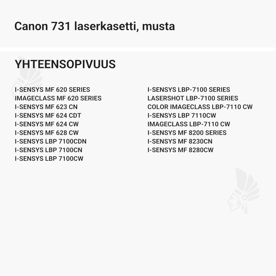 | Canon 731 laserkasetti, musta – tarvike, premium | 1400 | Väri: | Saatavuus: | 53,90 € | KORIIN |