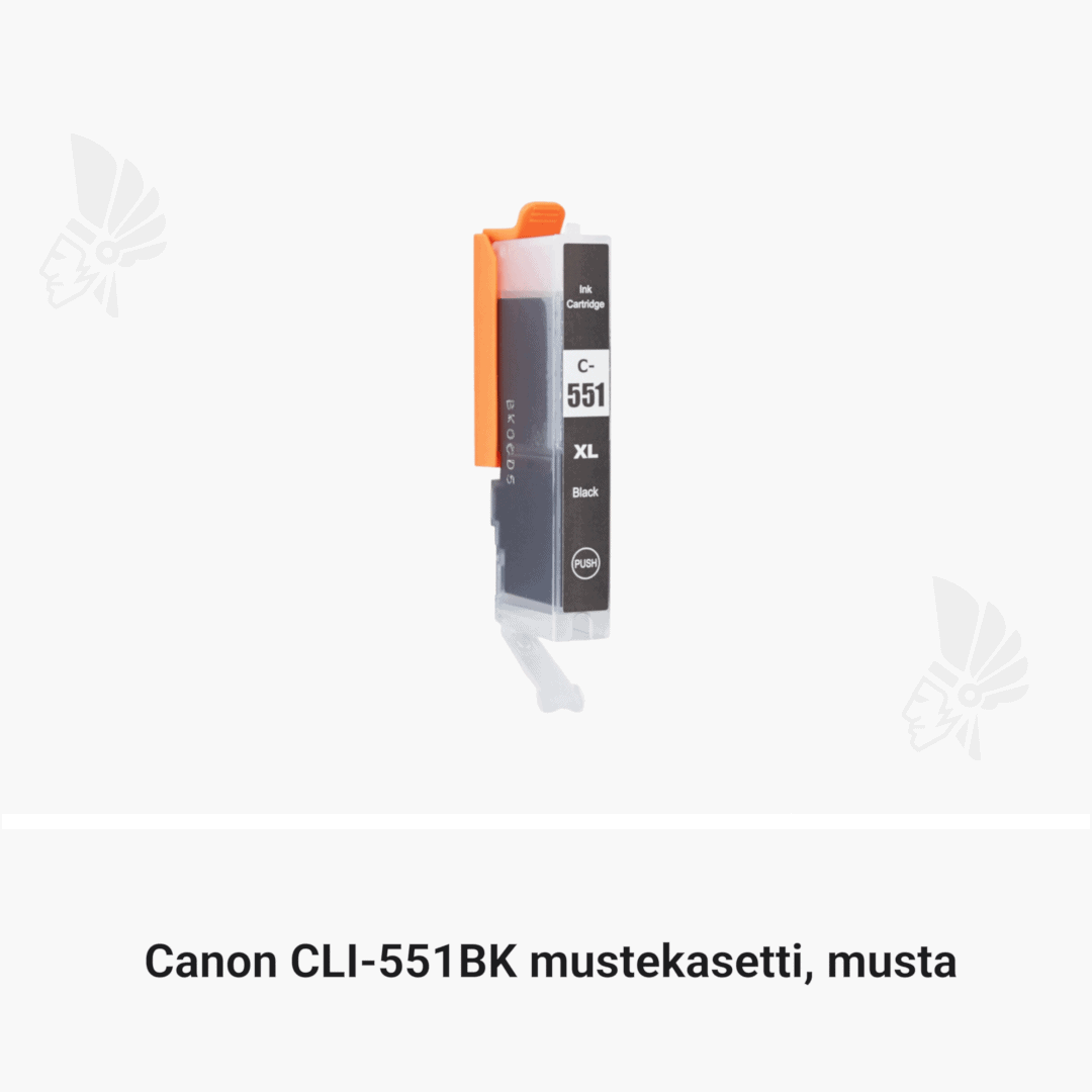 | Canon CLI-551BK mustekasetti, musta – tarvike, premium | 495 | Väri: | Saatavuus: | 12,90 € | KORIIN |