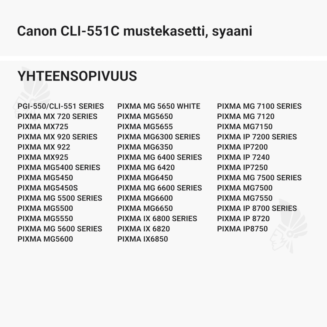 | Canon CLI-551C mustekasetti, syaani – tarvike, premium | 332 | Väri: | Saatavuus: | 12,90 € | KORIIN |