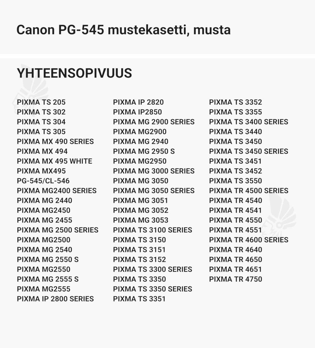 | Canon PG-545 mustekasetti, musta – tarvike, premium | 180 | Väri: | Saatavuus: | 29,90 € | KORIIN |