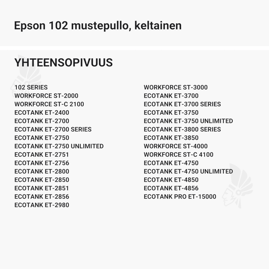 keltainen mustepullo Epson 102 – Takuu 3 vuotta.