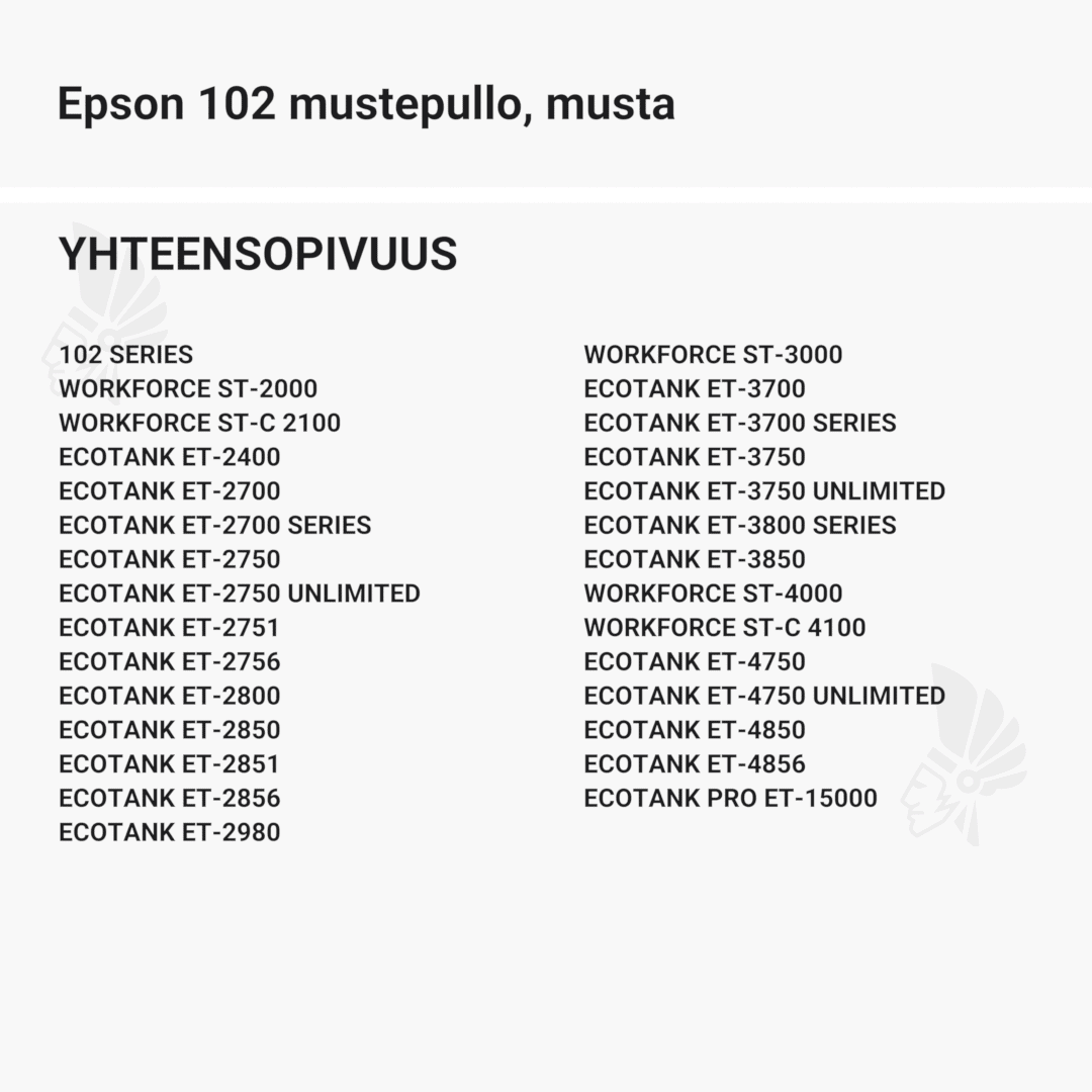 musta mustepullo Epson 102 – Takuu 3 vuotta.