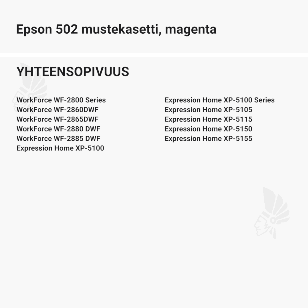 Tuote: Epson 502 mustekasetti, magenta – tarvike, premium