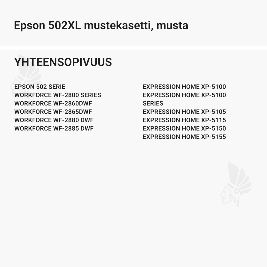 musta mustekasetti Epson 502XL – Takuu 3 vuotta.
