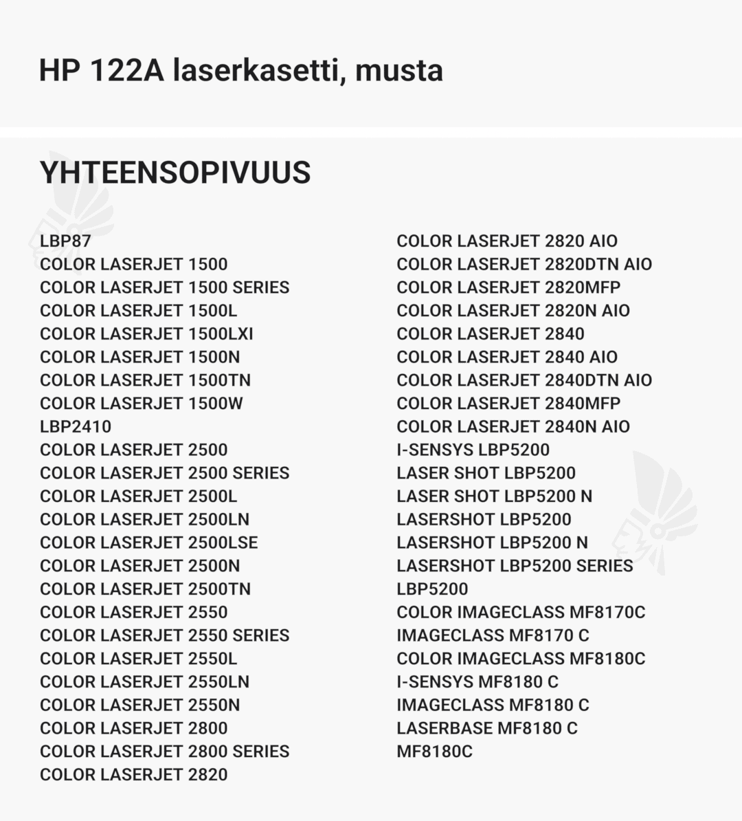 | HP 122A laserkasetti, musta – tarvike, premium | 5000 | Väri: | Saatavuus: | 45,90 € | KORIIN |