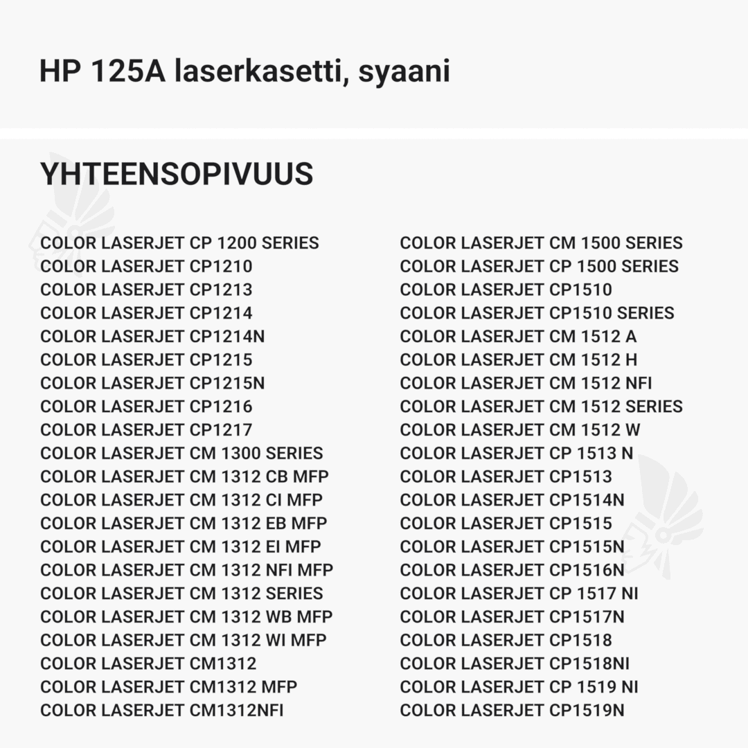 | HP 125A laserkasetti, syaani – tarvike, premium | 1400 | Väri: | Saatavuus: | 53,90 € | KORIIN |