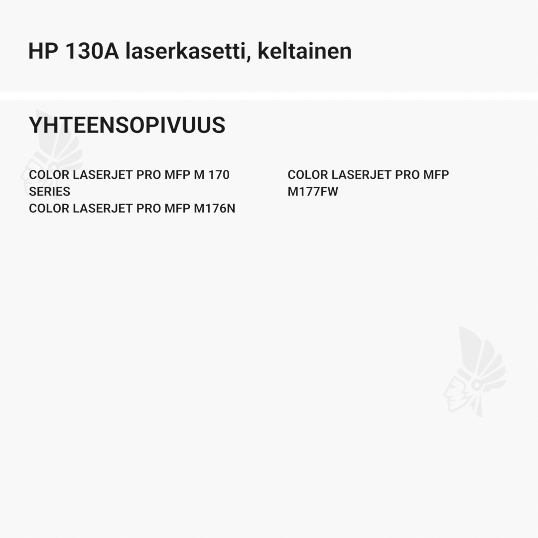 | HP 130A laserkasetti, keltainen – tarvike, premium | 1000 | Väri: | Saatavuus: | 44,90 € | KORIIN |
