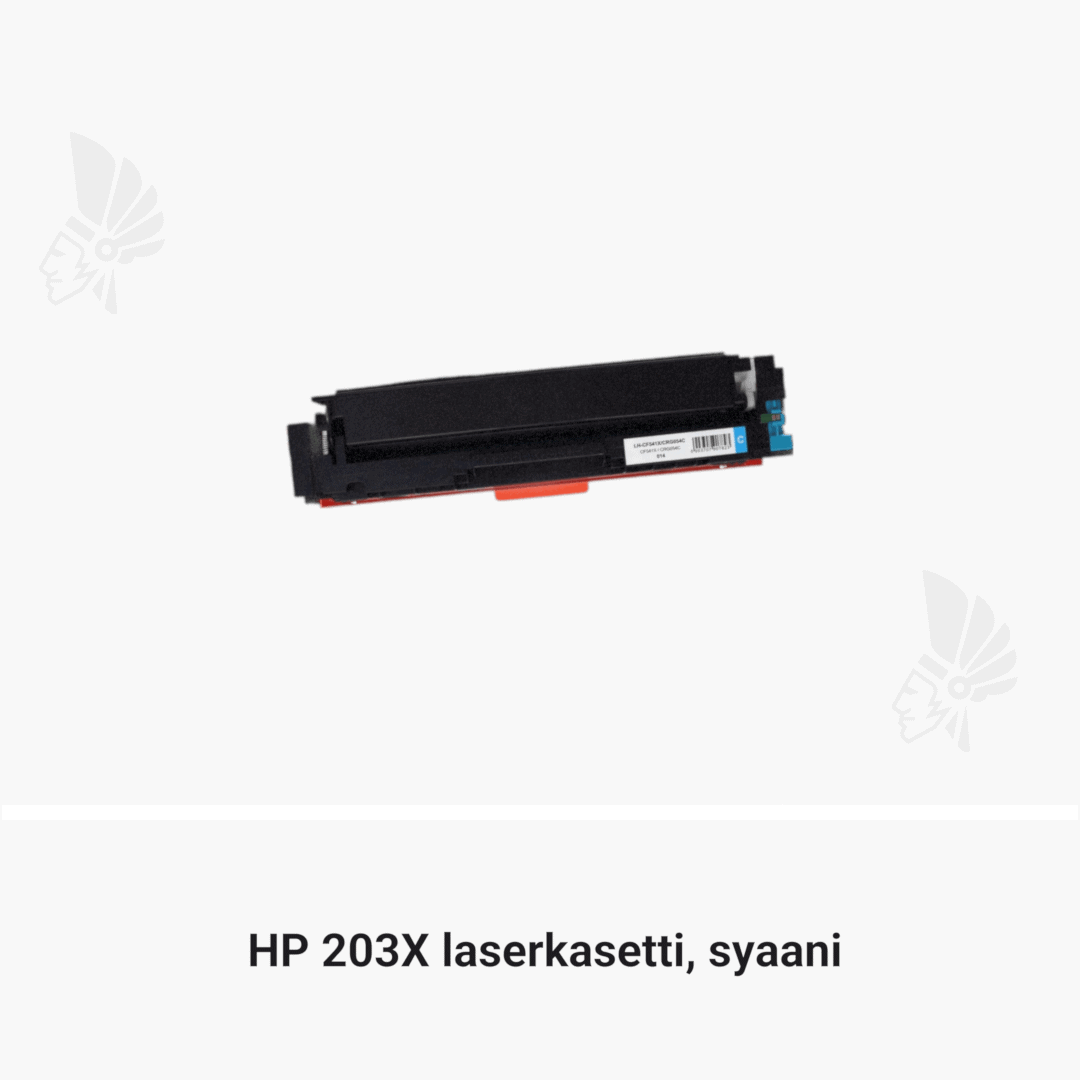 | HP 203X laserkasetti, syaani – tarvike, premium | 2500 | Väri: | Saatavuus: | 99,90 € | KORIIN |