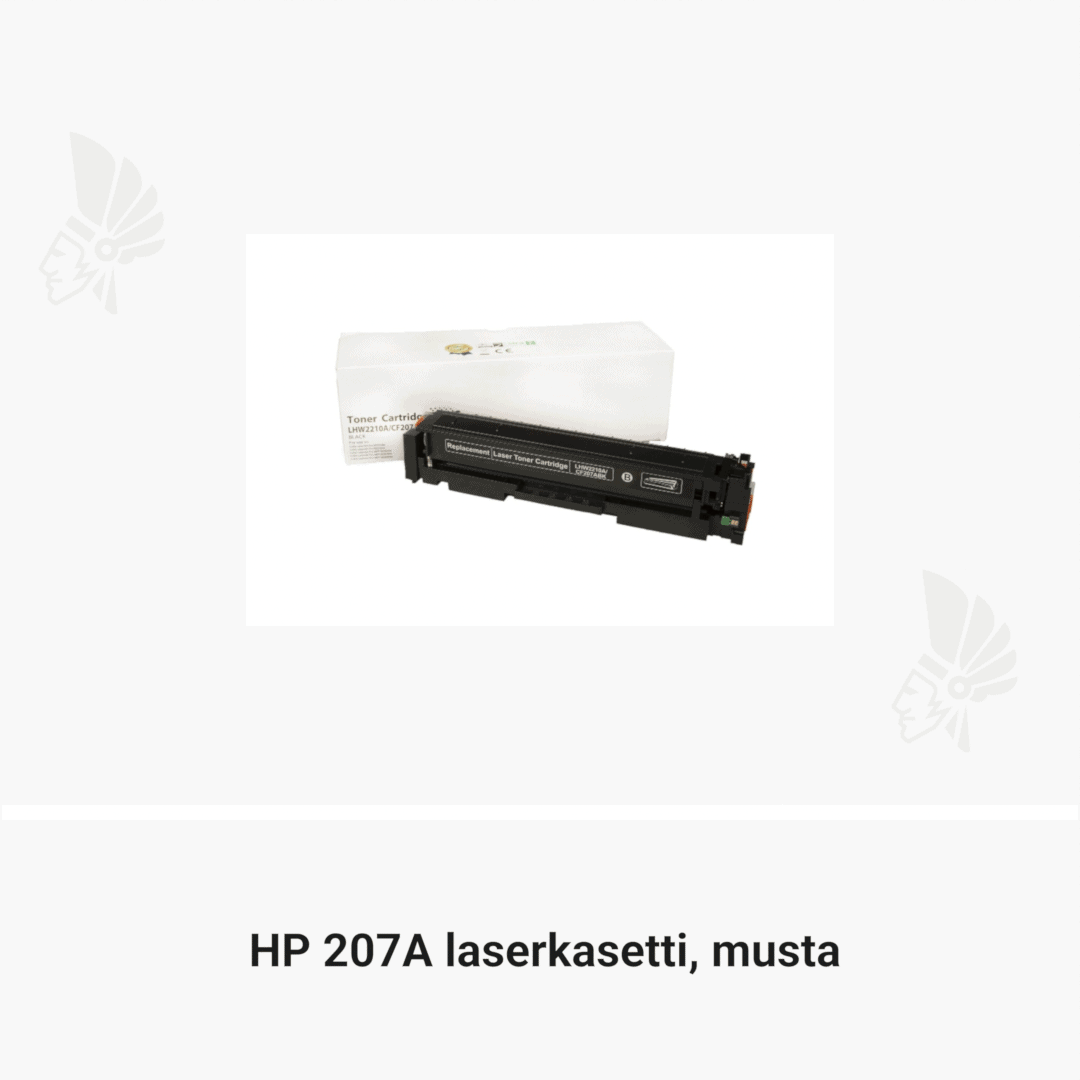 | HP 207A laserkasetti, musta – tarvike, premium | 1350 | Väri: | Saatavuus: | 59,90 € | KORIIN |