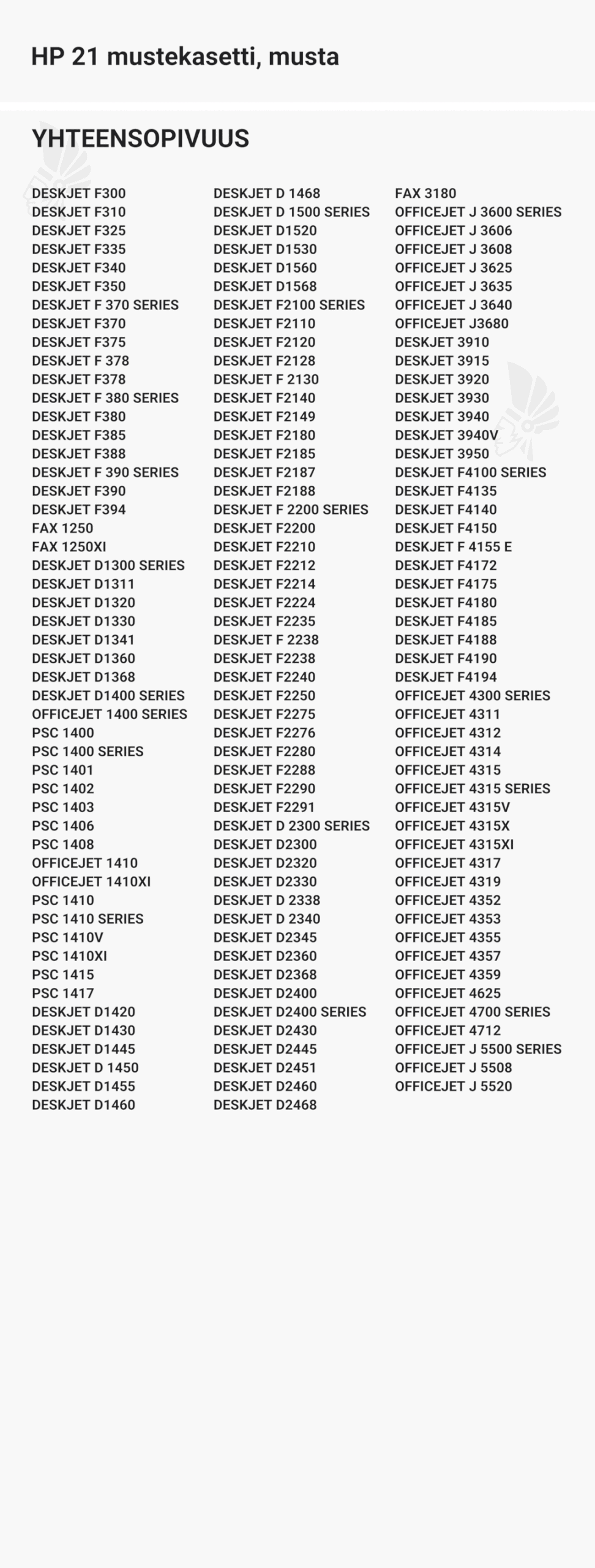 | HP 21 mustekasetti, musta – tarvike, premium | 190 | Väri: | Saatavuus: | 21,90 € | KORIIN |