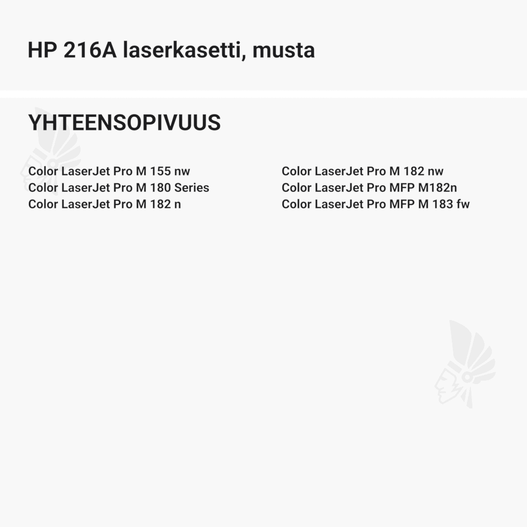 | HP 216A laserkasetti, musta – tarvike, premium | 1050 | Väri: | Saatavuus: | 59,90 € | KORIIN |