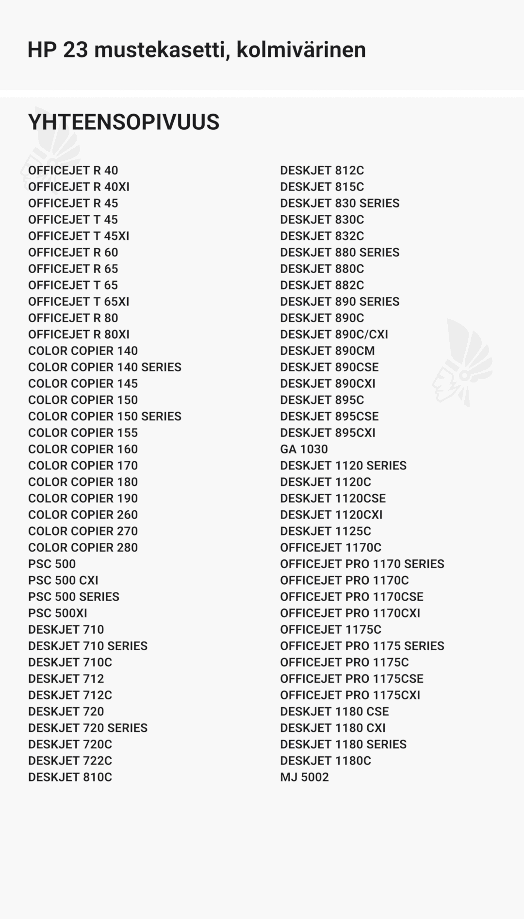 | HP 23 mustekasetti, kolmivärinen – tarvike, premium | 640 | Väri: | Saatavuus: | 30,90 € | KORIIN |
