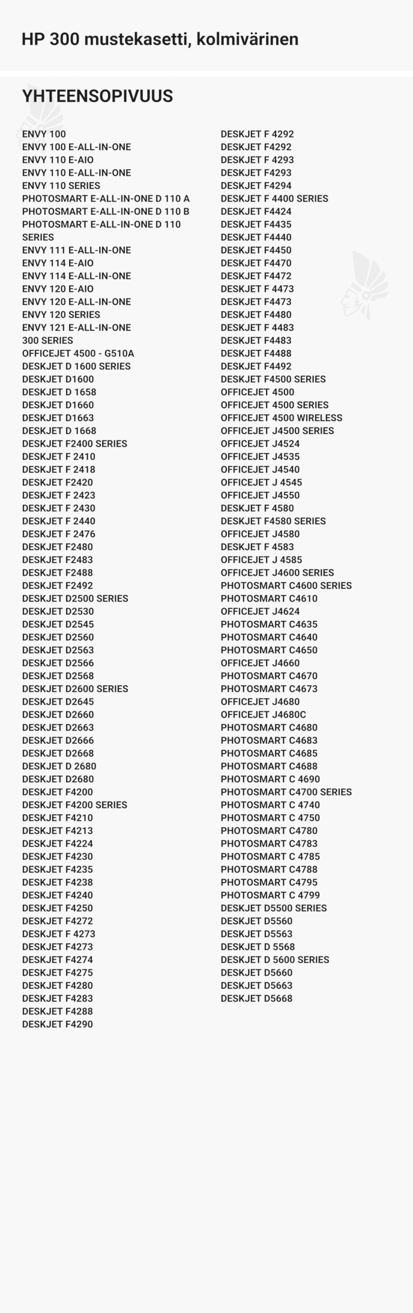 | HP 300 mustekasetti, kolmivärinen – tarvike, premium | 165 | Väri: | Saatavuus: | 22,90 € | KORIIN |