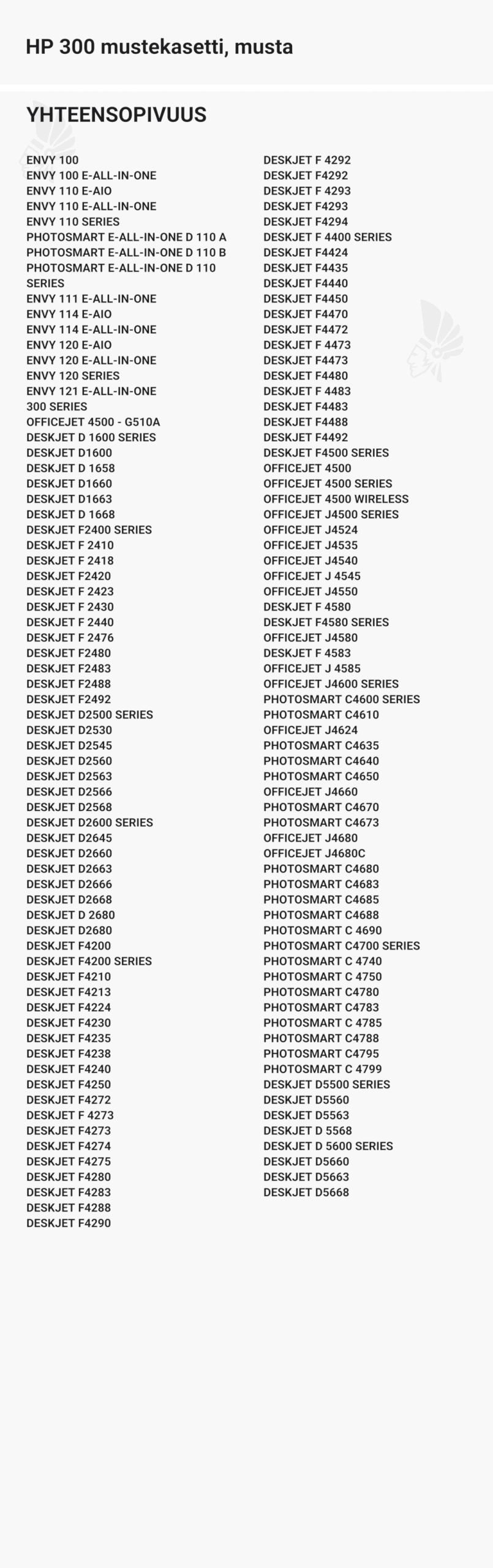 | HP 300 mustekasetti, musta – tarvike, premium | 200 | Väri: | Saatavuus: | 22,90 € | KORIIN |