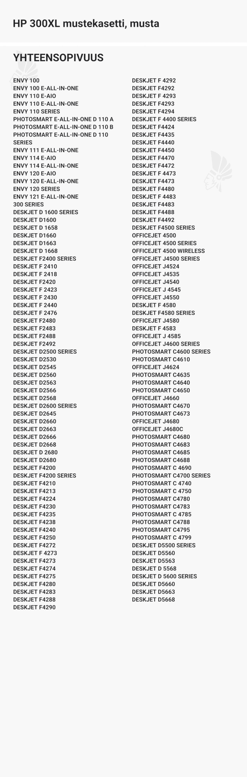 | HP 300XL mustekasetti, musta – tarvike, premium | 600 | Väri: | Saatavuus: | 22,90 € | KORIIN |
