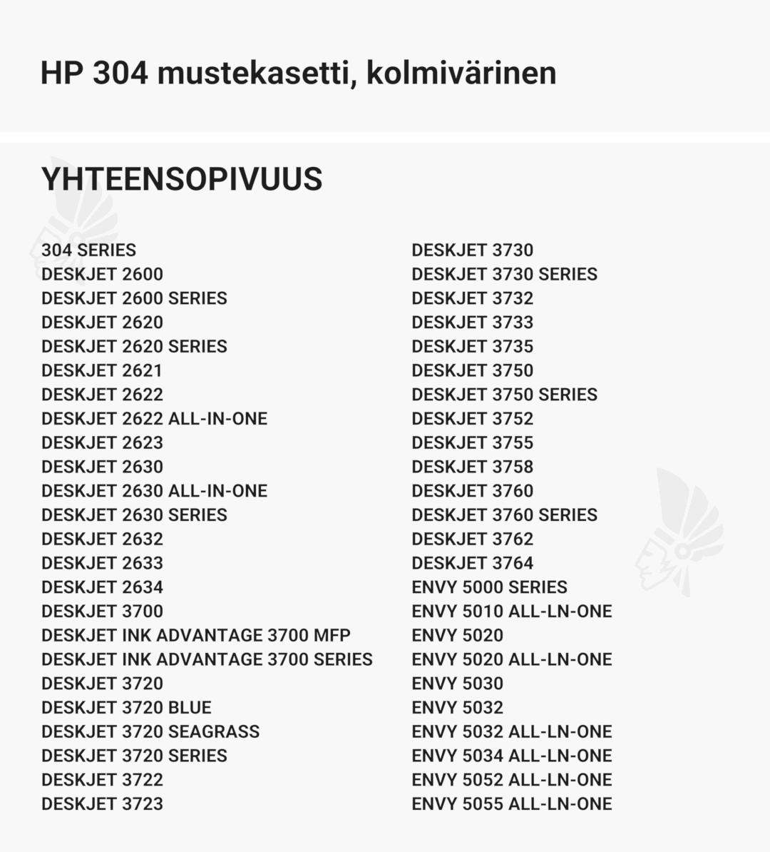 | HP 304 mustekasetti, kolmivärinen – tarvike, premium | 100 | Väri: | Saatavuus: | 29,90 € | KORIIN |