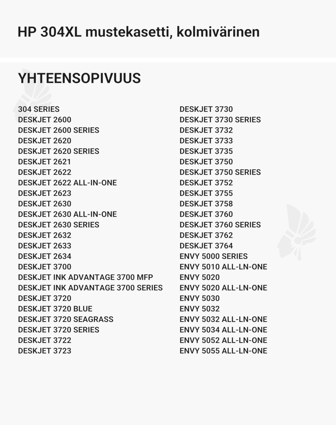 | HP 304 mustekasetti, kolmivärinen – tarvike, premium | Väri: | Saatavuus: | 29,90 € | KORIIN |