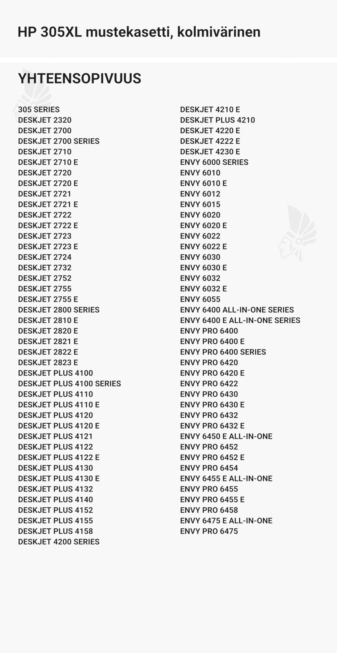 | HP 305XL mustekasetti, musta – tarvike, premium | 200 | Väri: | Saatavuus: | 29,90 € | KORIIN |