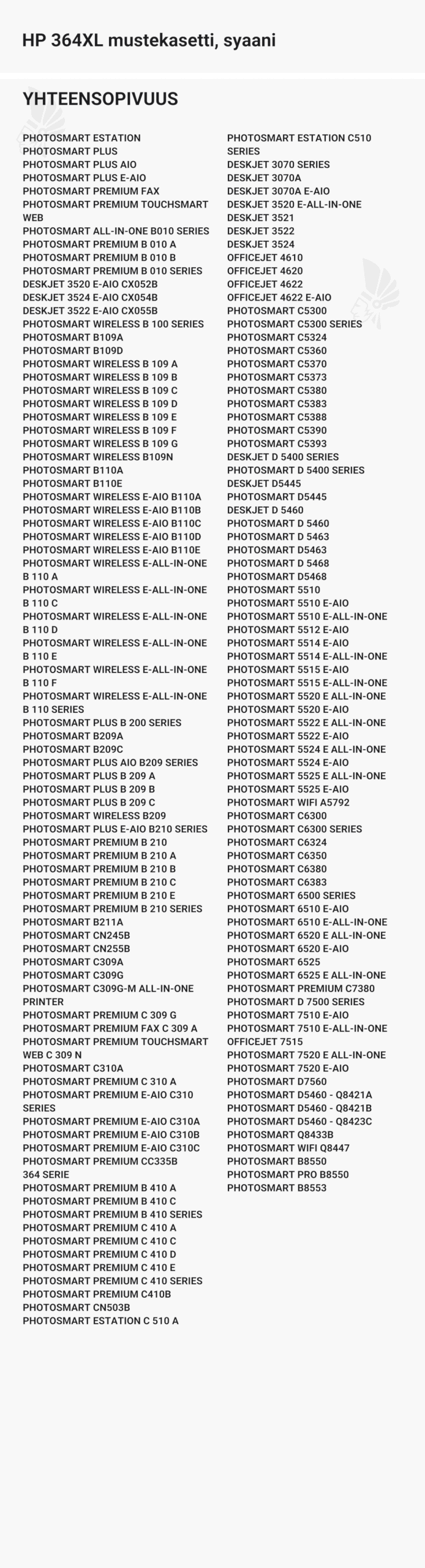 | HP 364XL mustekasetti, syaani – tarvike, premium | 750 | Väri: | Saatavuus: | 11,90 € | KORIIN |