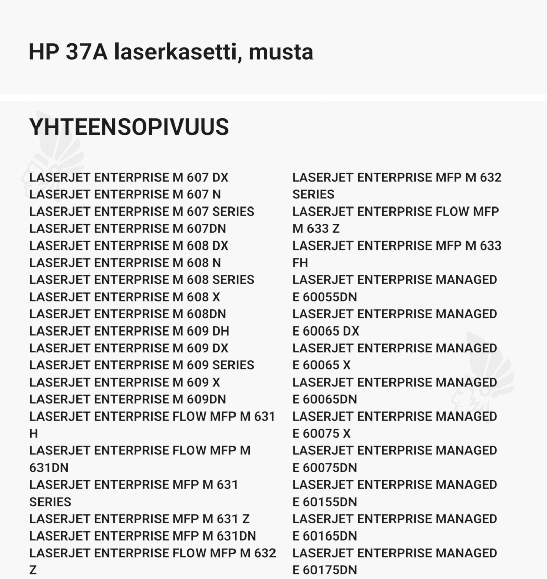 | HP 37A laserkasetti, musta – tarvike, premium | 11000 | Väri: | Saatavuus: | 199,90 € | KORIIN |