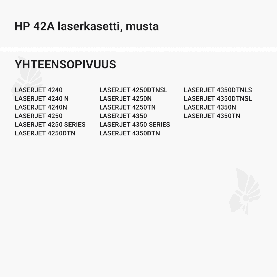 musta mustekasetti HP 42A. Takuu 3 vuotta.