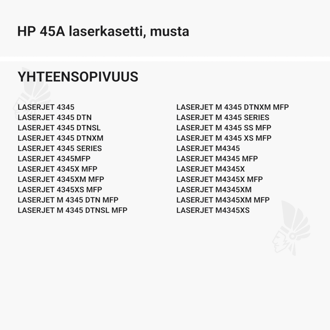 | HP 45A laserkasetti, musta – tarvike, premium | 20000 | Väri: | Saatavuus: | 79,90 € | KORIIN |