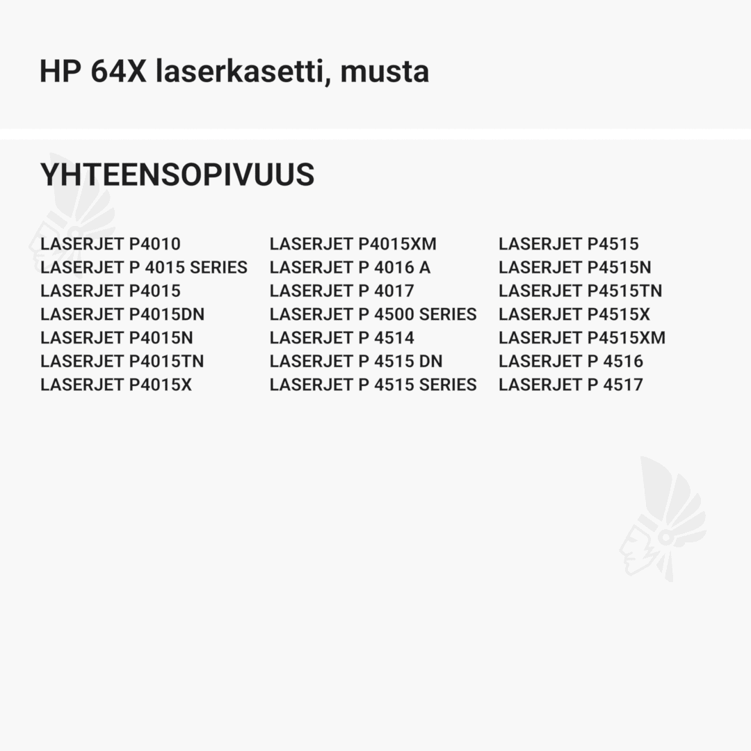 | HP 64X laserkasetti, musta – tarvike, premium | 24000 | Väri: | Saatavuus: | 79,90 € | KORIIN |