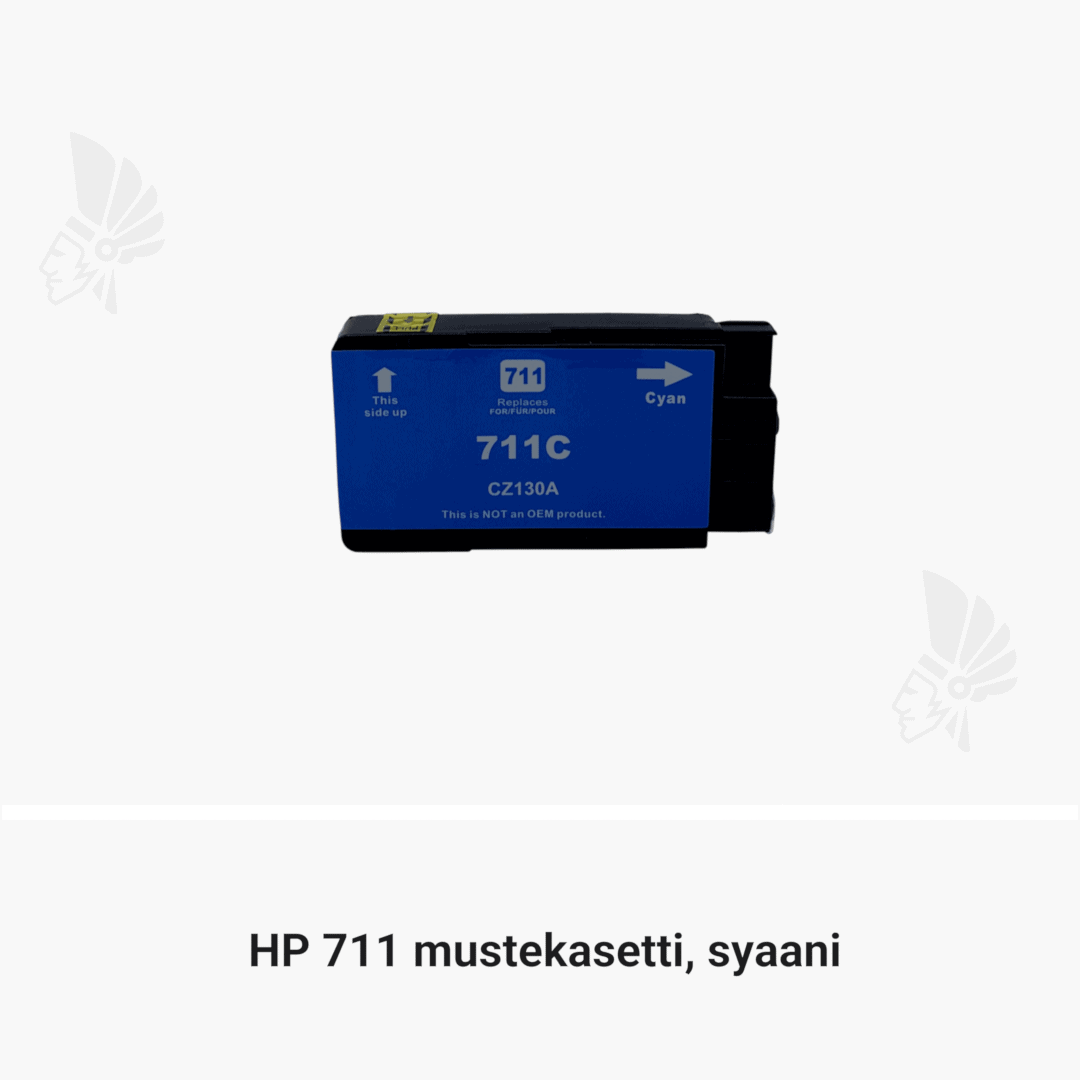 Osta meiltä HP 711 -mustekasetti, syaani kolmen vuoden takuulla hintaan 12.90 €. Kaikki myymämme mustekasetit ovat täysin uusia ja vaativien ISO-standardien mukaisesti tehtaalla valmistettuja kasetteja.
