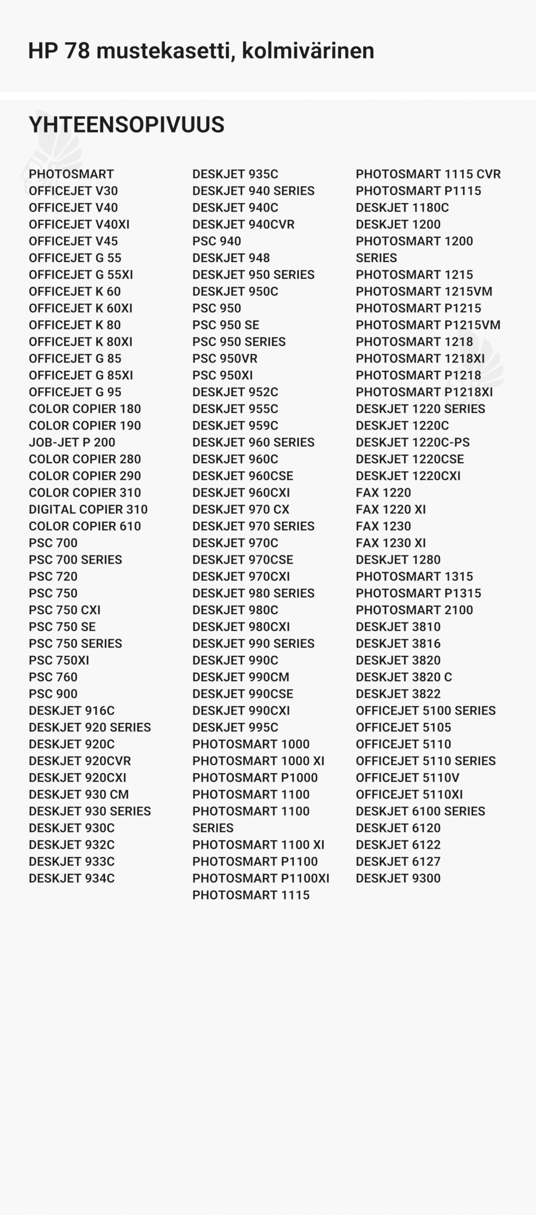 kolmivärinen mustekasetti HP 78 – Takuu 3 vuotta.