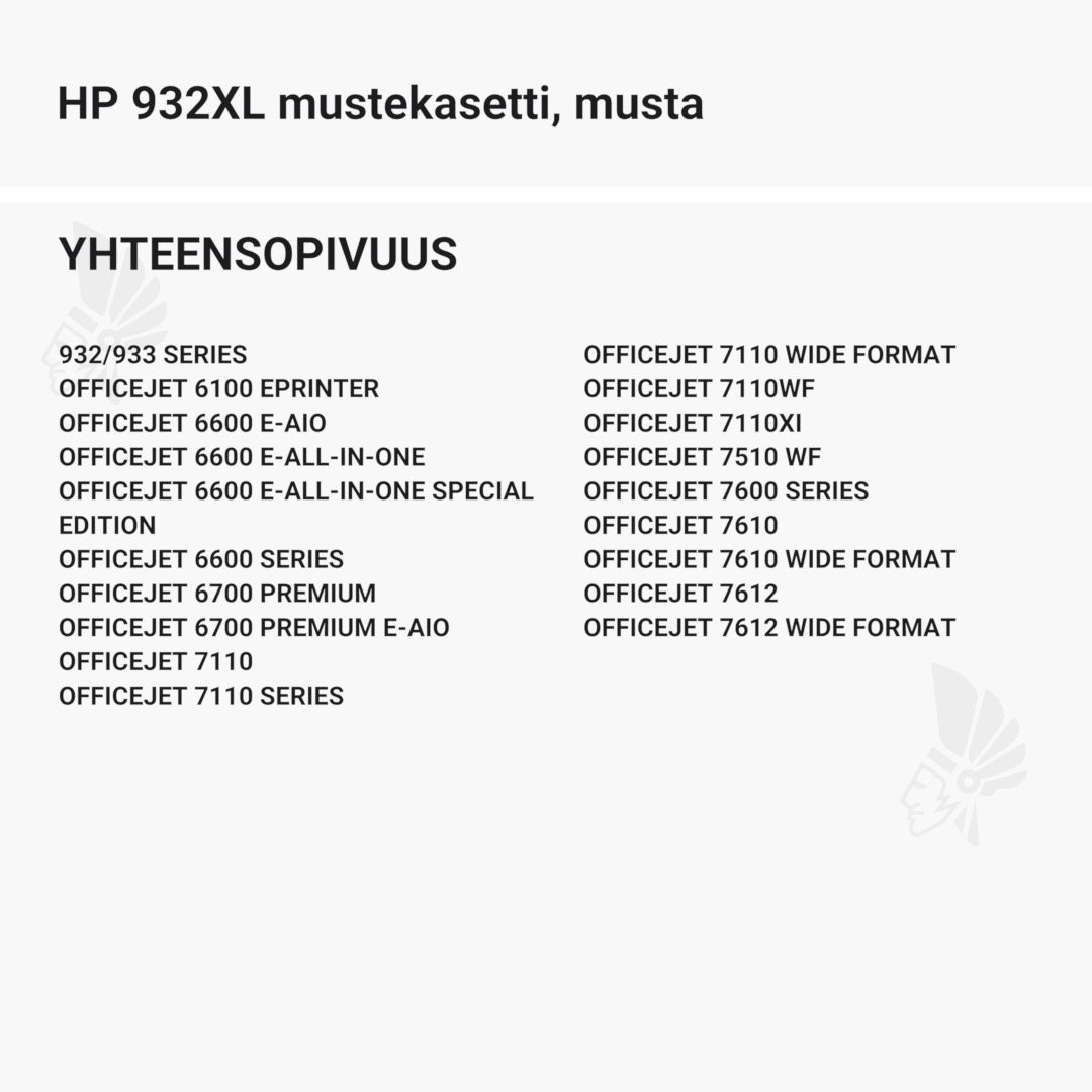 | HP 932XL mustekasetti, musta – tarvike, premium | 1000 | Väri: | Saatavuus: | 21,90 € | KORIIN |