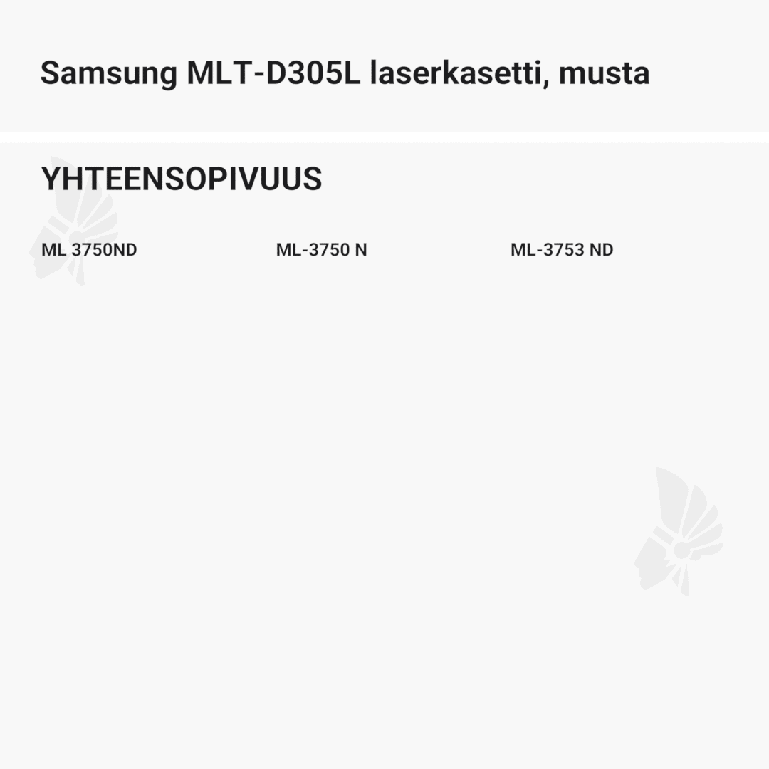 | Samsung MLT-D305L laserkasetti, musta – tarvike, premium | 15000 | Väri: | Saatavuus: | 99,90 € | KORIIN |